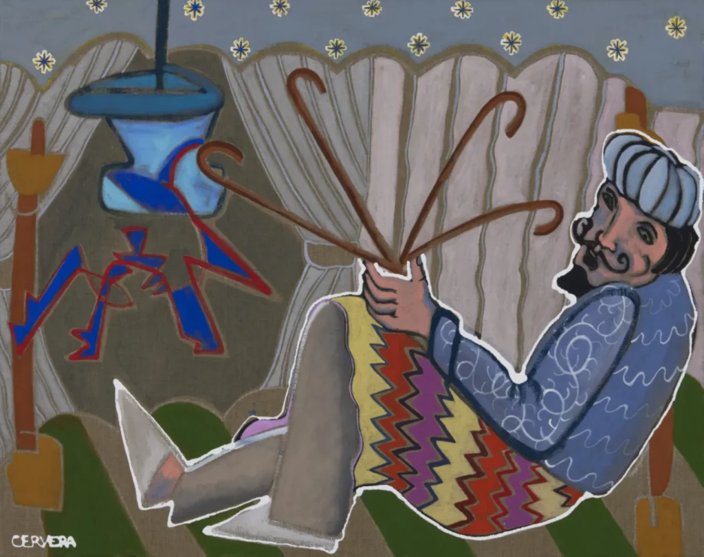 Peintre voyageur et conteur méditerranéen, André Cervera compose des fresques colorées nourries de mythes populaires, de figures marines, de masques rituels et de récits politiques. Ses œuvres sont traversées par les traditions du Sud, les carnavals, les légendes orales et les voix invisibles. Une peinture généreuse, expressive, viscérale, qui lie l’instinct et la mémoire.
