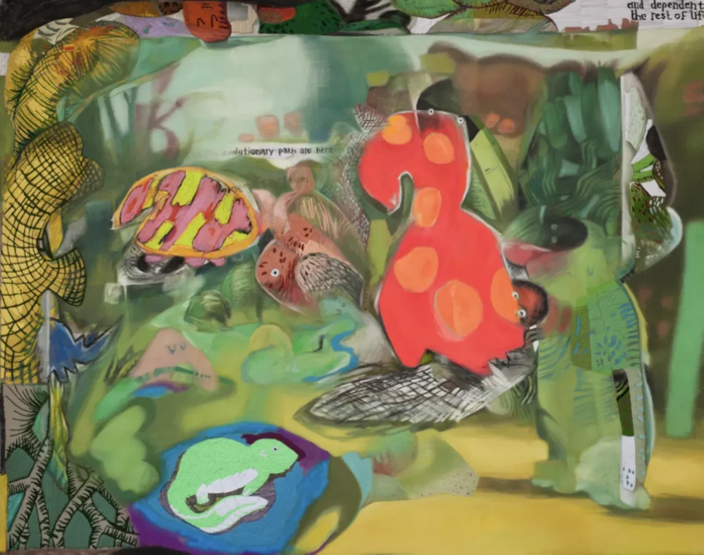 Le thème de la mythologie est un élément essentiel des œuvres d’Anastasiou. Ses peintures sont mystiques et d’un autre monde. Elles dépeignent toujours un sentiment de magie et une nature vivante et bienveillante envers les humains, malgré toutes leurs imperfections. Le sentiment global d’abondance, d’acceptation, d’espièglerie et de régénération est la marque de fabrique des œuvres d’Anastasiou.