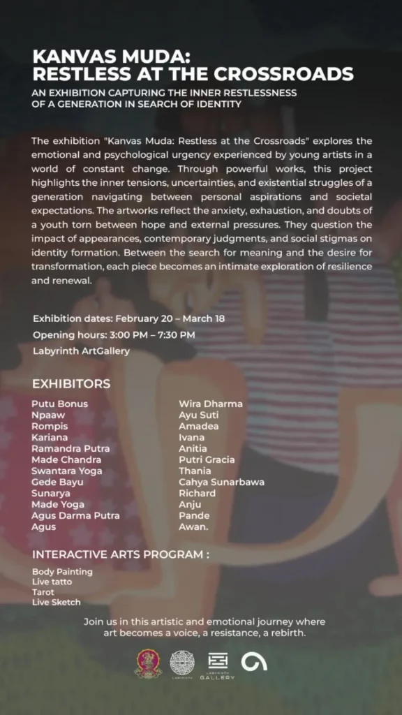 Partant des préoccupations liées aux bouleversements environnementaux à Bali, l’exposition élargit son champ pour susciter une réflexion conceptuelle plus profonde sur le changement climatique en tant que métaphore universelle. L’expérience qui en résulte est une exploration à plusieurs niveaux de la relation complexe entre l’individu et son environnement, observée à travers les prismes de la Nature, de la Culture, du Social et du Spirituel.